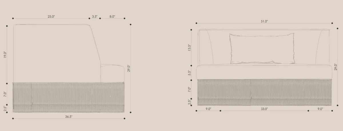 Structure is constructed from reinforced wood, with seat and back cushions in highdensity foam wrapped in memory foam.