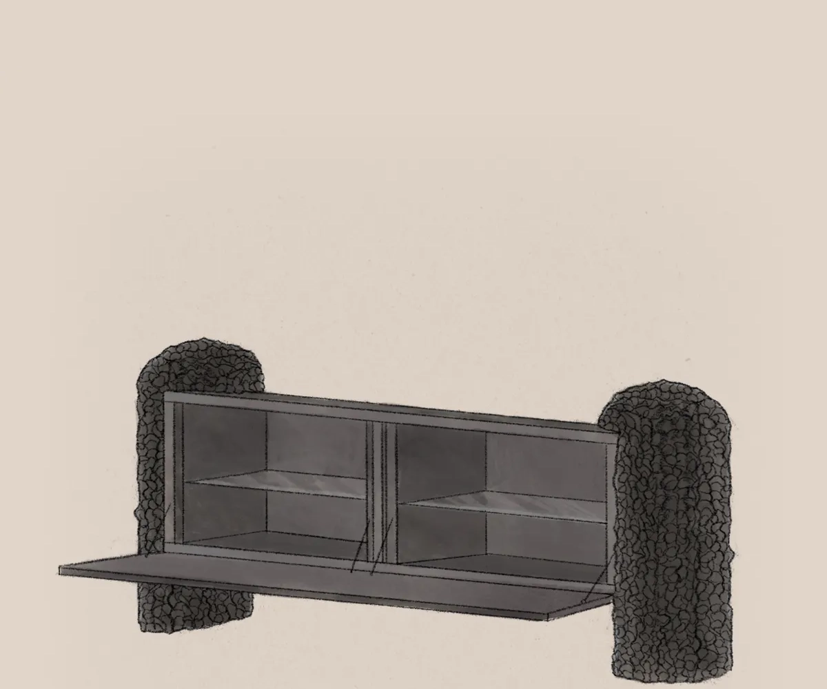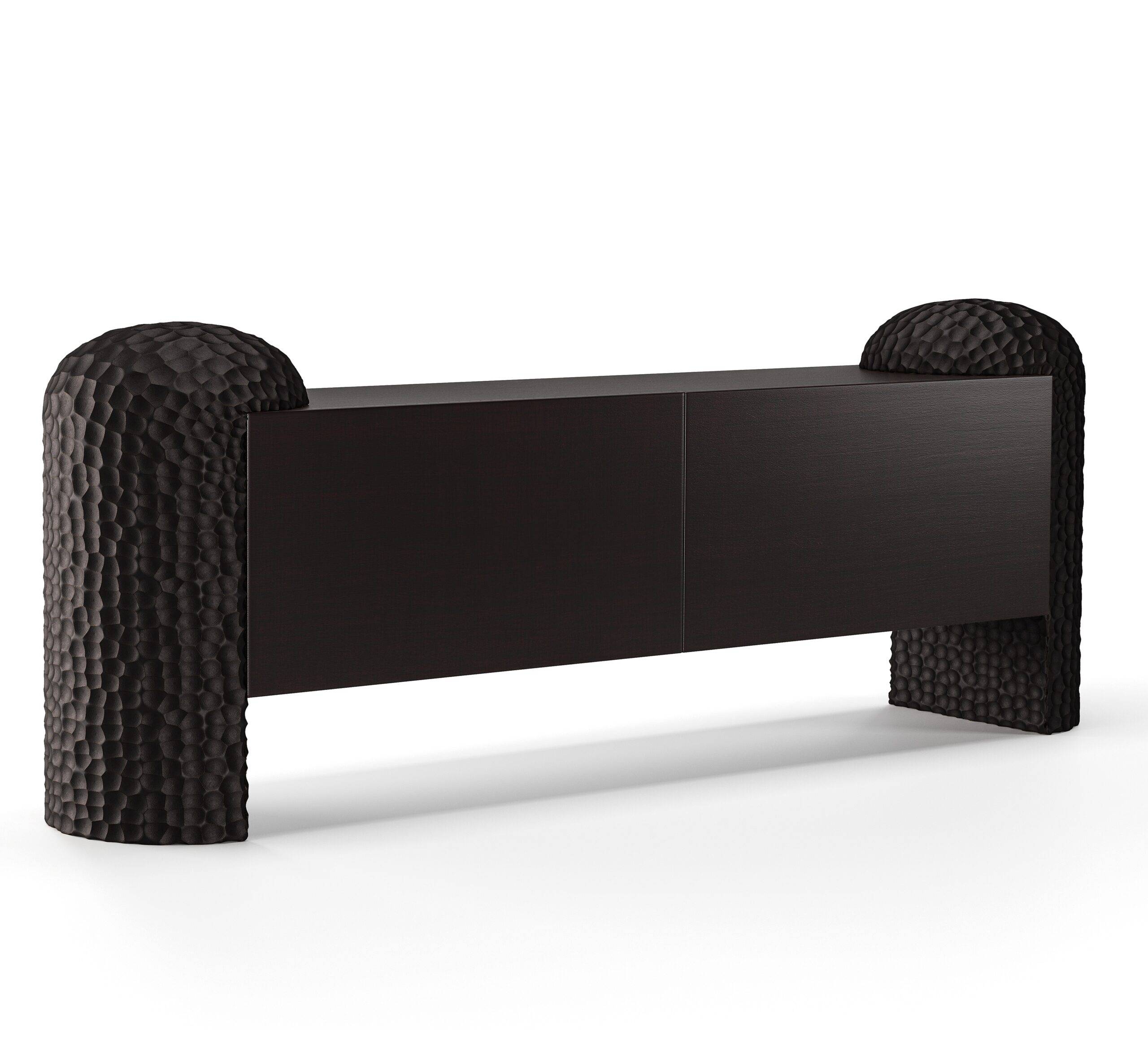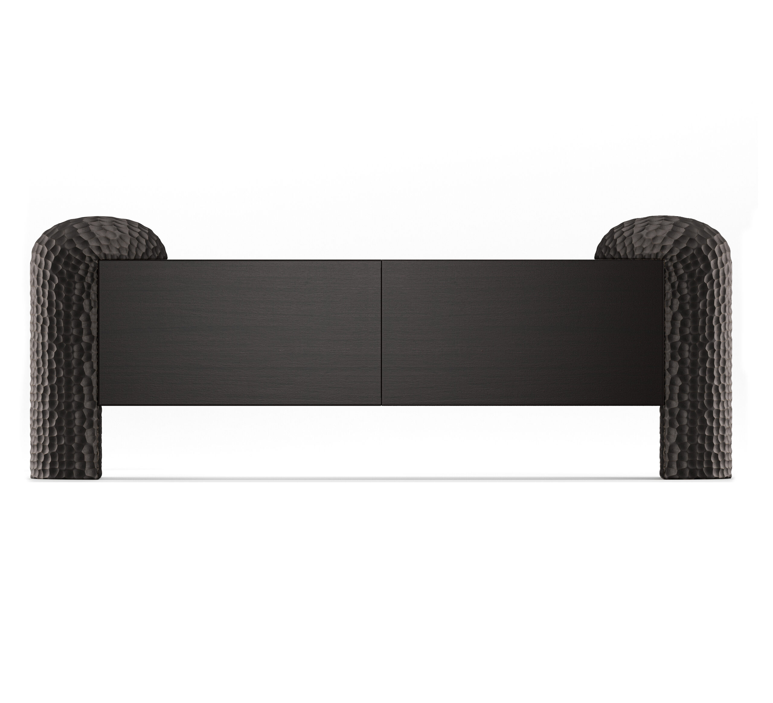 The Black Forest Armchair recalls ancient totems and woodland creatures. Its thick legs echoing tree trunks, its upright frame a quiet sentinel in the room. Solid yet ceremonial, it is a seat of intention.